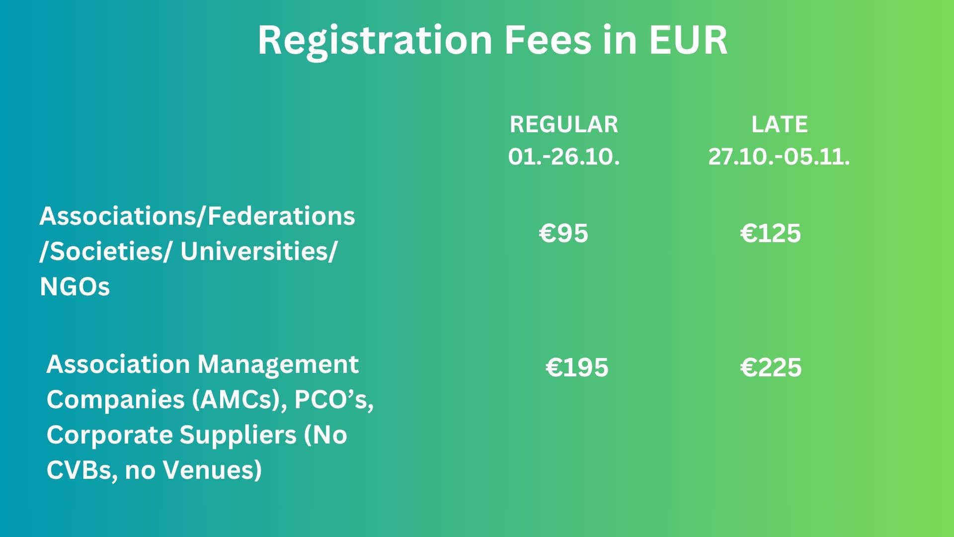 For group discounts* (ticket purchase for 2 or more colleagues from same association / organization):